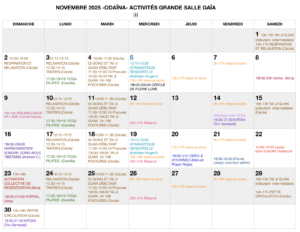 Visuel Calendrier de nos activités de groupe: