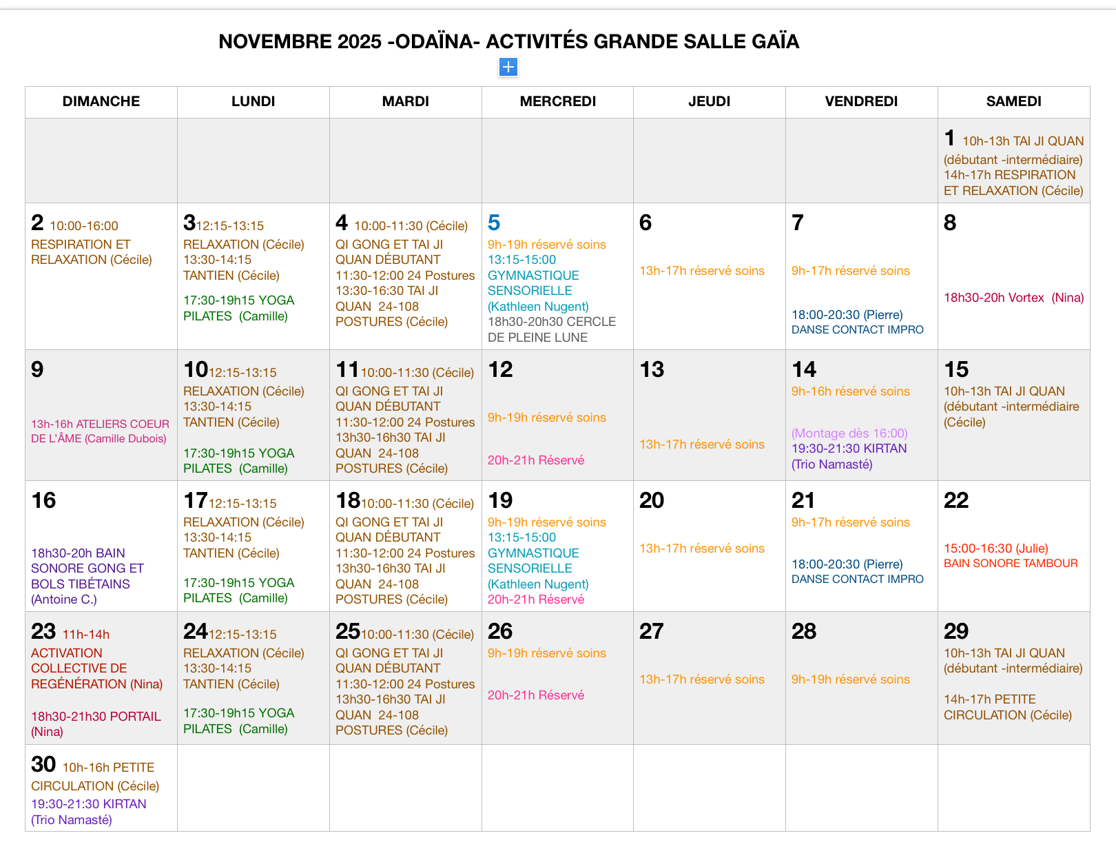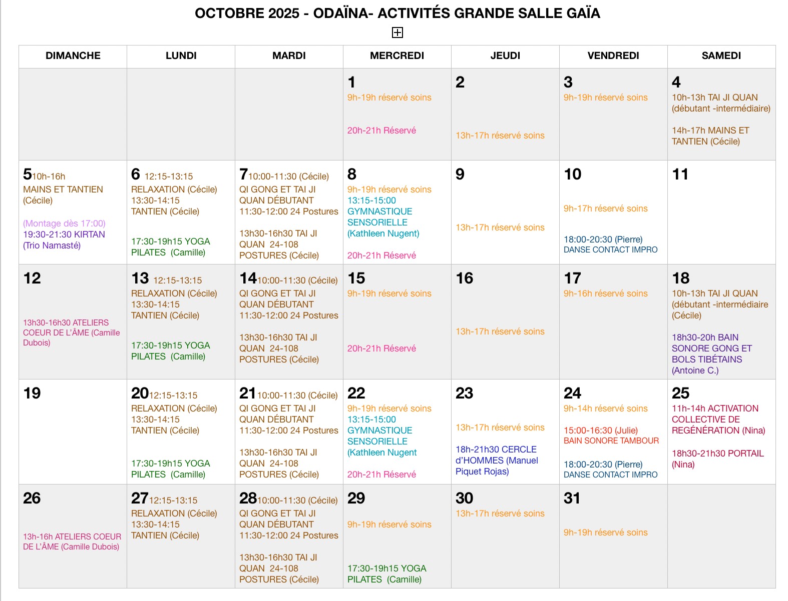 *** Important: merci d’être en contact direct avec la personne responsable de chaque activité.